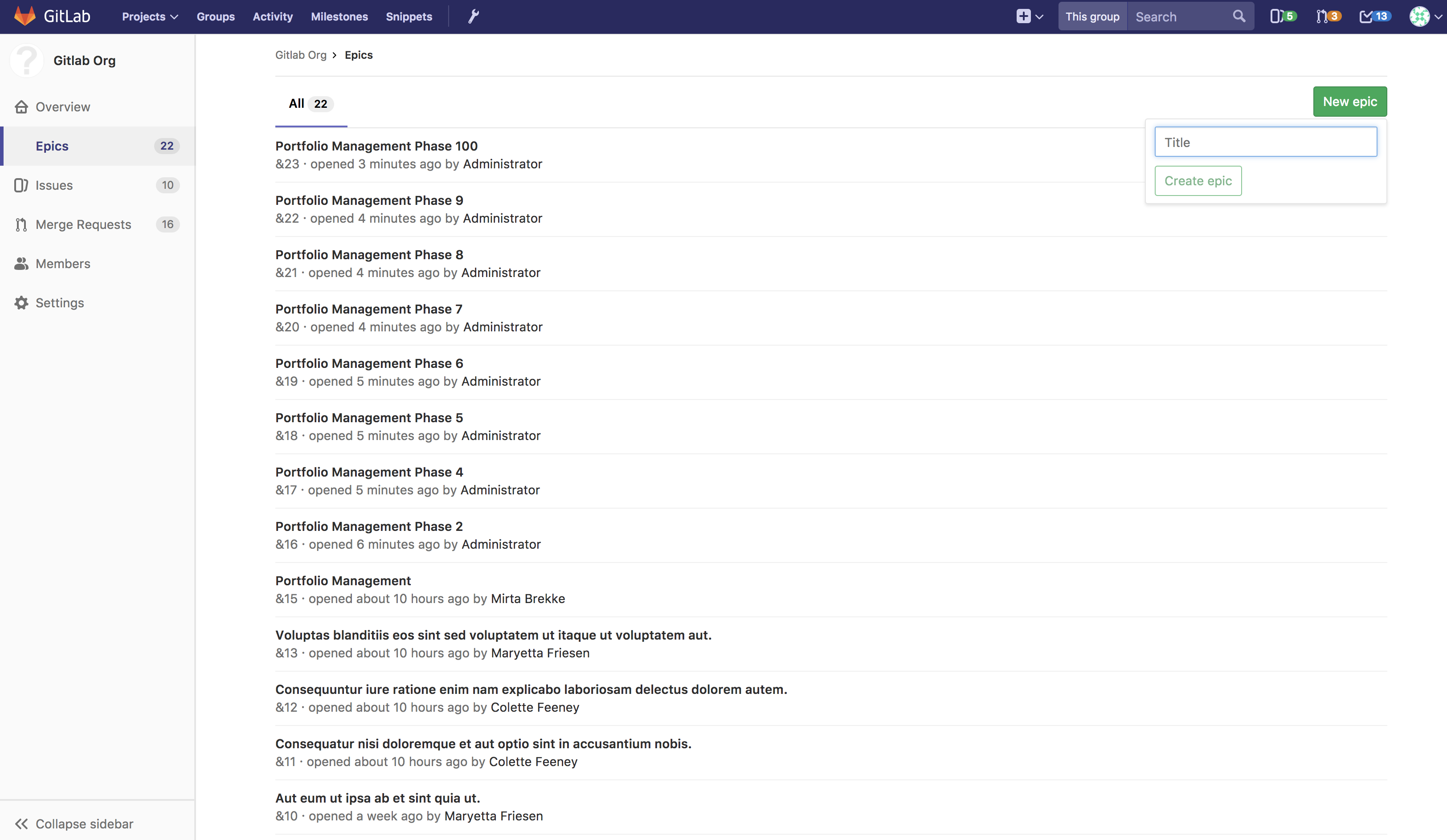 group. From this page, you can also click the New epic button at the top right to